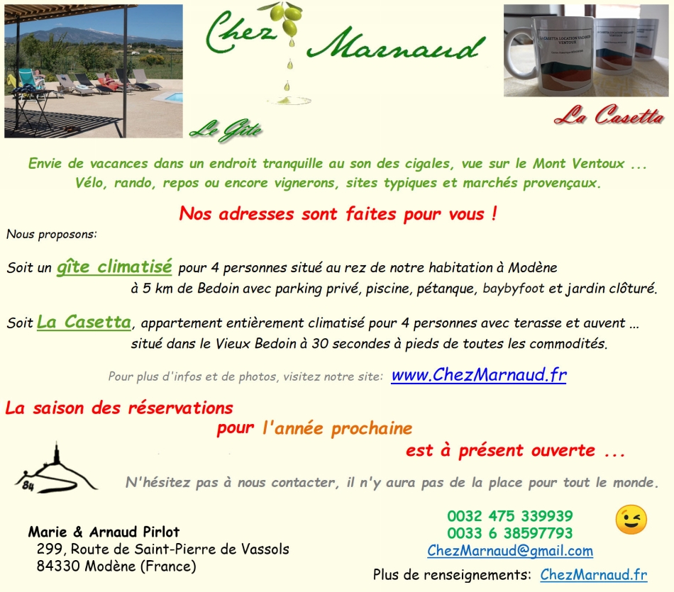 . Ou cliquez sur l'adresse mail ci-après: ChezMarnaud@gmail.com